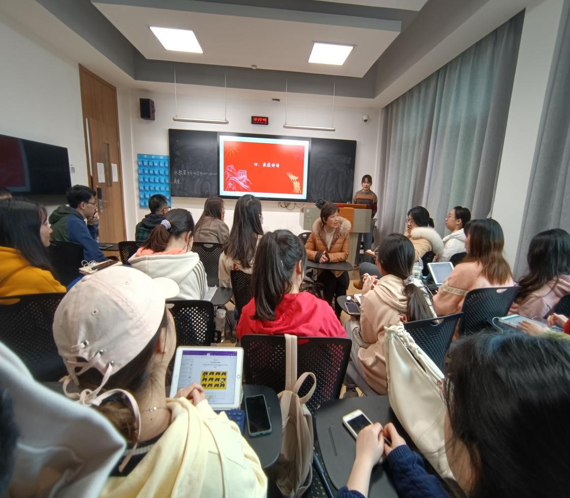 谢文玉和同学们分享了自己早年求学时从党史,世界史书籍阅读中受益匪浅的经历,并鼓励同学们在这个师资队伍持续扩大,学科建设不断发展的学校里抓住一切发展机遇,多读书,读好书,学好中国文化,讲好中国故事。她还鼓励大家要坚定信念与决心,牢记初心使命,践行责任担当,勇担时代重托,奋力建设双一流。