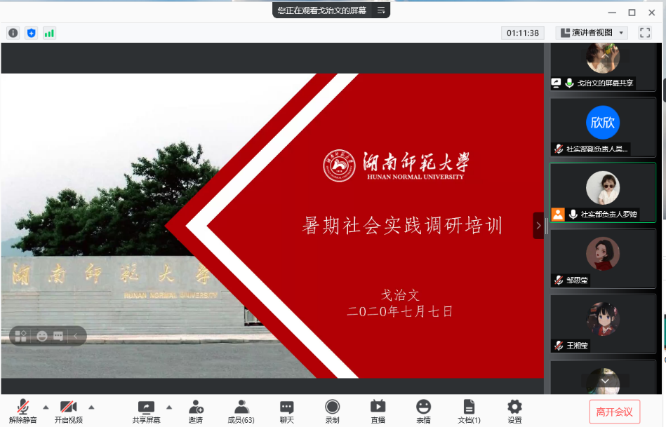 戈治文结合自身实践经验为同学们带来了关于调研方面的方法讲解。他围绕选题、前期准备、调研方法、调查问卷的设计、调查报告的撰写等主题展开讲解,真实地还原了调研的整体流程,让实践队员们了解到了调研的严谨性与实用手段。
