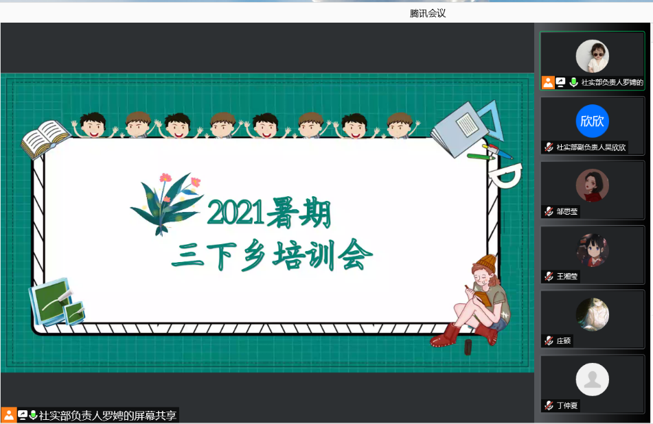 (通讯员 吴欣欣 罗娉)7月8日晚,永利集团官网2021年暑期社会实践培训大会在腾讯会议平台举行。院团委指导老师姚雯,团委学生副书记刘伊宁,培训主讲人戈治文、刘美汐、夏秦萍,院社会实践部成员及院暑期社会实践团全体队员与会。会议由院社会实践部负责人罗娉主持。