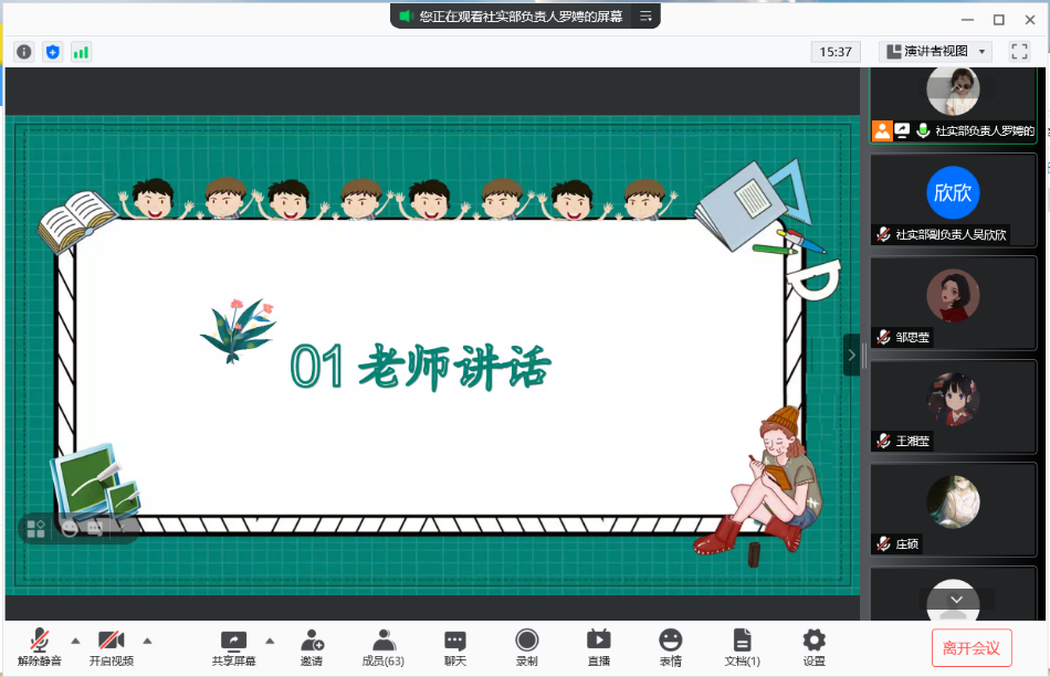 夏秦萍就新闻稿格式、新闻内容、新闻照片、新闻投稿要求及注意事项五个方面进行详细讲解。她强调,新闻投稿必须注意时效性及真实性。她鼓励同学们积极投稿,做好宣传工作,提高实践活动影响力。