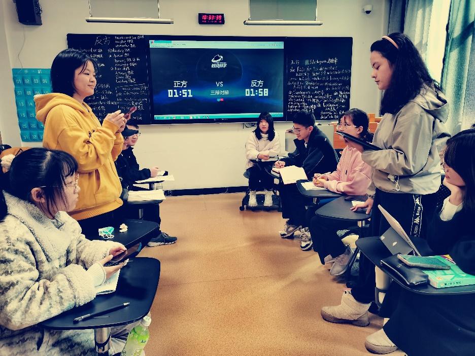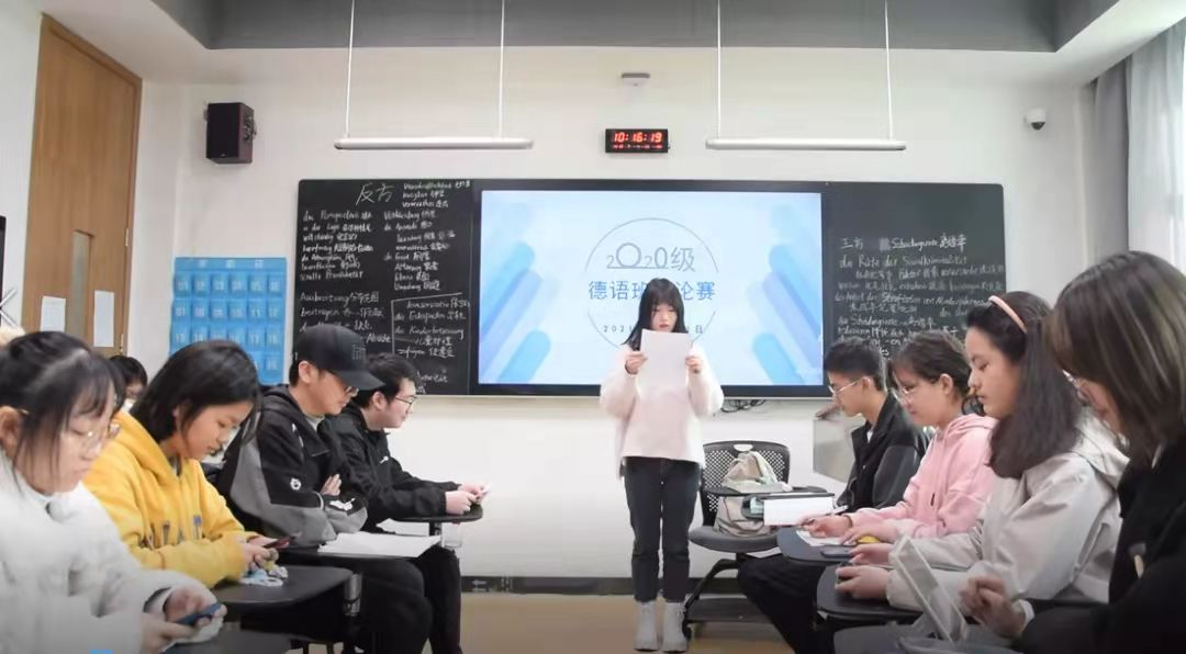 (通讯员 肖家玉)11月11日上午十点,德文专业在腾龙楼402教室举办了中德双语辩论赛。比赛由曹淑娴、王晶主持,德文专业教师阳凌艺指导。20级德语班全体学生参加了比赛。