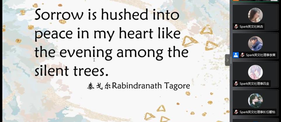 故事分享环节较好地调动了会员的参与热情,多位会员勇敢开麦,用英语进行表达与交流。游戏环节增强了社团会员间的互动性与社团凝聚力。本次活动为社团后续活动开展提供良好范例,同时也促进Spark英文社在特殊时期的转型发展。