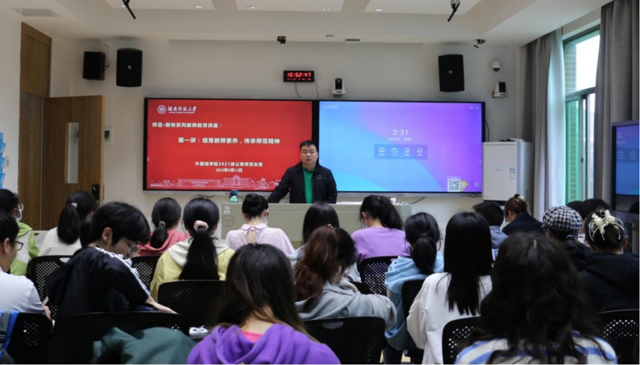 (通讯员 童雨莎)5月12日,永利集团官网2021级公费师范生班在腾龙楼404教室启动“师道·薪传”系列教师教育讲座。此次会议由学工办老师张元强主持。永利集团官网党委副书记李蜜、英语系主任叶冬出席此次讲座。