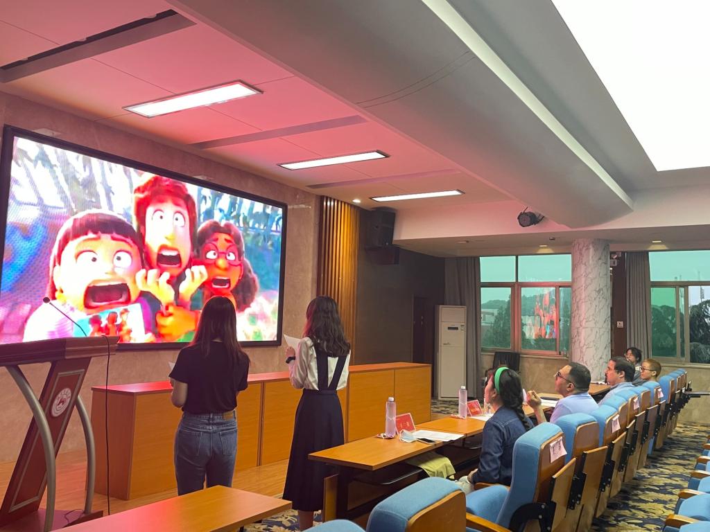 各组选手按照抽签顺序为事先准备的视频配音,每组配音作品各具特色,不同作品的呈现犹如不同场景的切换,创意与风采的碰撞,兴趣性与学术性的交锋,让观众深深感受到语言的魅力,了解语言背后的文化,开阔了视野。