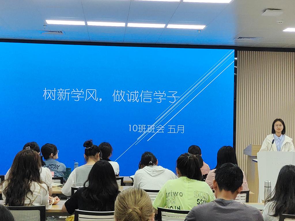 同时,“树清新学风,做诚信学子”主题班会在22个班级内热烈开展。班会上,主讲人全面细致地为同学们讲解有关诚信、清廉的古今知识。“诚信二字,看似简单,但能够真正贯穿人生轨迹,则不见得容易。无论是在生活、学习还是工作当中,做一个诚信的人,需要强大的信念,抵挡外界的横流物欲,才能坚守本心,真实诚信。”参加班会的同学如是说道。借此机会,同学们都积极发言,表达自己的所思所悟,表明自己将在未来的学习和生活中,将诚信的力量内化于心、外化于行的决心。