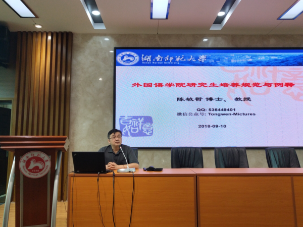 陈敏哲教授做“外​国语学院研究生培养规范与例释”主题讲座