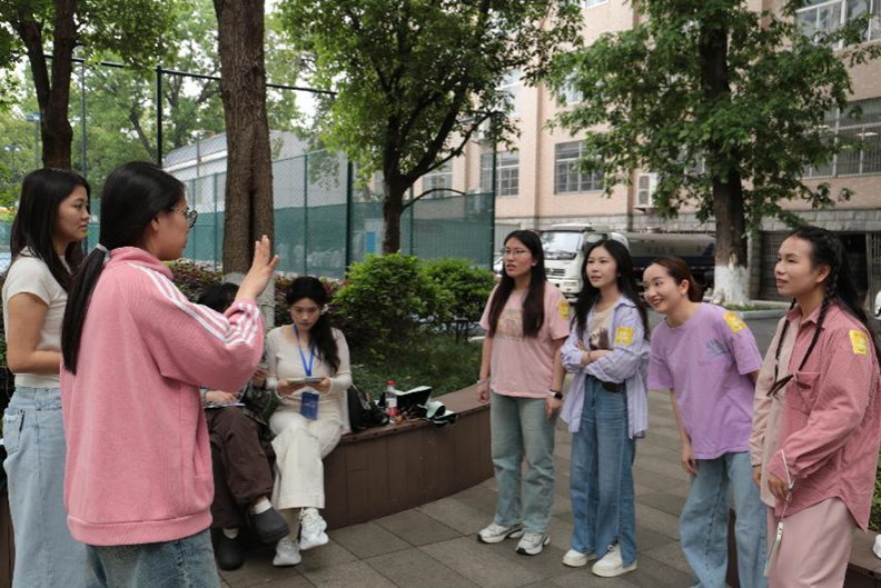 网球场边的“你划我猜”游戏,选手间全程仅能用英文、法语、日语等非母语语言进行交流讨论。面对诸如 “artificial intelligence”“cultural heritage”等抽象词汇,比划者通过生动的肢体语言和关键词提示,将词汇含义传递给队友。队友们则凭借敏锐的观察力与对自己专业词汇的熟悉度,快速猜出答案,现场充满智慧碰撞的火花与欢乐的笑声。