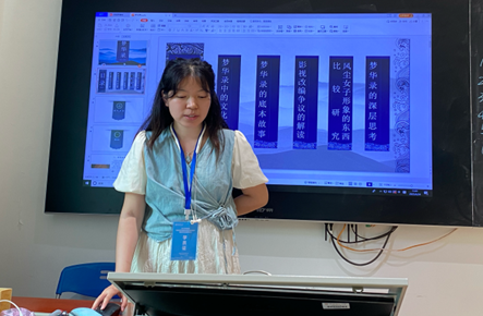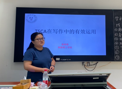 骆悠悠作为青年教师,分享了师生合作评价在写作中的有效运用。骆老师首先系统性地介绍了师生合作评价,包括其含义、特点、优势、流程及实践应用等。师生合作评价通过课前、课内、课后三个阶段,师生、生生主体间的评价实现课程的教学效果,解决了我国目前外语教学中“学用分离”“文道分离”的问题。然后骆老师以具体教学案例为大家展示此教学法的实际应用。在讲解结束后,骆老师以自身丰富的经验对其他学者的个人发展困惑给予建议,她鼓励年轻学者要勇于尝试,勇敢追梦。