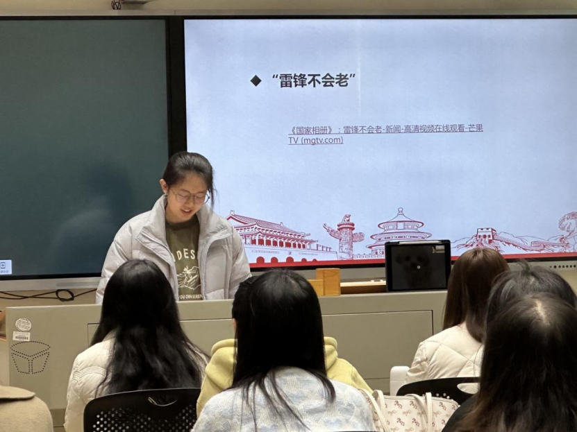 随后,石丽青简要向支部党员介绍了雷锋精神,并播放了“雷锋不会老”的主题视频,支部内党员同志对此展开了积极讨论,党员樊怡雯同志表示雷锋同志的感人事迹使其认识到了雷锋精神的神圣性、大同性和领导性。党员秦玥同志深刻认识到要以雷锋为榜样,学习、传承、弘扬雷锋精神,让雷锋精神历久弥新。
