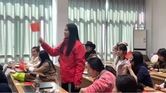 游戏环节结束,全体党员与入党积极分子齐声高唱《我和我的祖国》。歌声深情饱满,回荡悠扬,唱出了爱国爱党的无限热情,将活动氛围推向高潮。活动尾声,副书记傅馨可为在竞赛中表现优异的同志颁发奖品,全体参会人员合影留念,本次主题党日活动圆满谢幕。