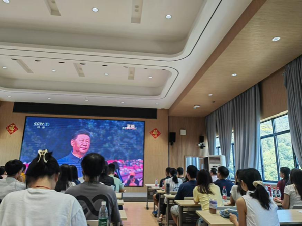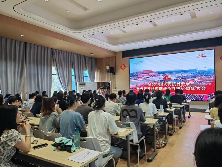 2025年9月3日上午9时,支部全体党员在腾龙楼613多功能报告厅集中收看纪念中国人民抗日战争暨世界反法西斯战争胜利80周年大会及阅兵仪式直播。党员们怀着无比崇敬的心情,认真聆听习近平总书记发表的重要讲话。总书记的话语铿锵有力,带领大家一同回溯中国人民抗日战争那段艰苦卓绝却又波澜壮阔的伟大历史,引导全体党员向为抗战胜利而英勇捐躯的先烈们致以最深切的缅怀。阅兵仪式上,受阅方阵整齐划一、气势如虹,迈着矫健步伐走过天安门广场;新型主战坦克、先进战机等现代化武器装备也依次亮相,充分展现我国强大的国防实力。壮观场面令在场党员深受鼓舞、备感振奋,现场掌声持续不断。