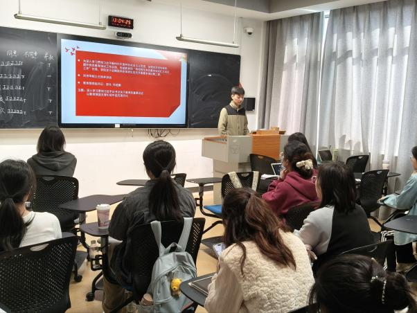 第一小组代表2025级英美文学方向新生党员蒋宇在发言中提出,外语专业应主动对接教育强国战略,着力培养“专业+外语”复合型人才,在学术交流与科技合作中发挥跨语言沟通的桥梁作用。她同时强调,应依托专业优势,积极推动中华优秀传统文化与中国式现代化实践成果的国际传播,探索构建跨文化话语体系,讲好新时代中国故事。