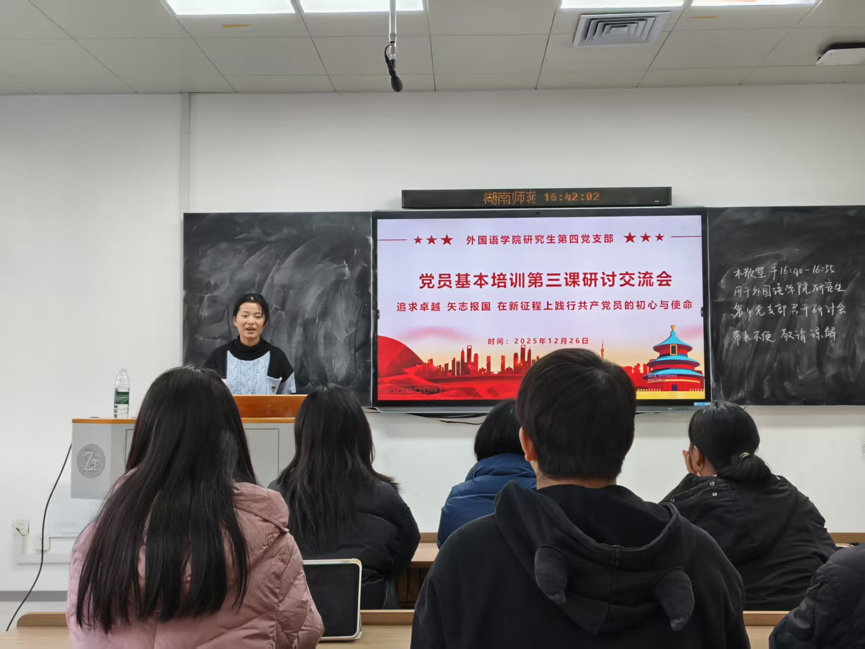(通讯员 谢彤宇)为深入学习贯彻新时代党的使命任务,激励党员在新征程中追求卓越、矢志报国,2025年12月26日,永利集团3044欢迎光临研究生第四党支部在综合楼202教室开展党员基本培训第三课研讨交流会,以“追求卓越、矢志报国——在新征程上践行共产党员的初心与使命”为主题。会议由支部副书记徐超敏主持,支部全体党员参加。