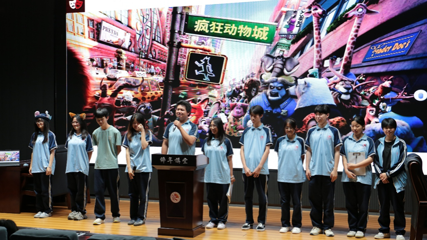 比赛环节精彩纷呈。1班带来《疯狂动物城》话剧,幽默生动;2班演绎《寻梦环游记》感人片段,情感细腻;4班呈现《冰雪奇缘》,角色转换自然,合唱高潮引爆现场。醴陵三中教师丁沛瑶现场点评,肯定了学生们的创造力与舞台表现力。实践团特别呈现《西游记》“高老庄抢亲”经典桥段,男扮女装与幽默表演赢得阵阵掌声。最终,1班荣获一等奖,2班二等奖,4班三等奖。