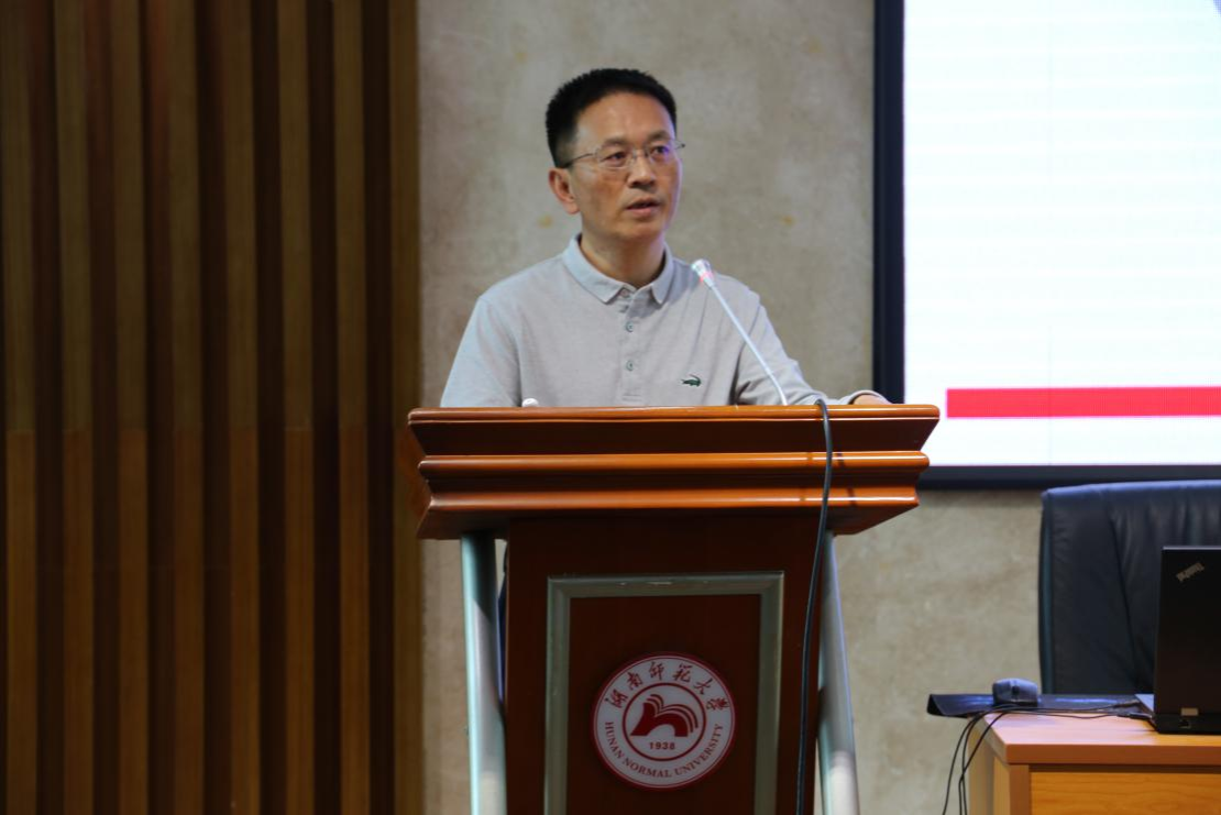 5月28日下午,长沙市长郡中学英语教研组长杨巍在515报告厅开展讲座。杨巍围绕“如何成为一个优秀的英语教师”开展讲座。他首先带领同学观看长郡中学的特色作业——联合国模拟辩论,并从高考各科目真题入手讲述跨学科能力和创新能力的重要性。他提出新时代外语教师应具备的专业素养包括:跨学科意识以及项目式学习课程和大观念单元整体教学设计能力。同时,新时代的学生也要具有语言能力、文化意识、思维能力和学习能力等核心素养。此场讲座由刘江凌主持。
