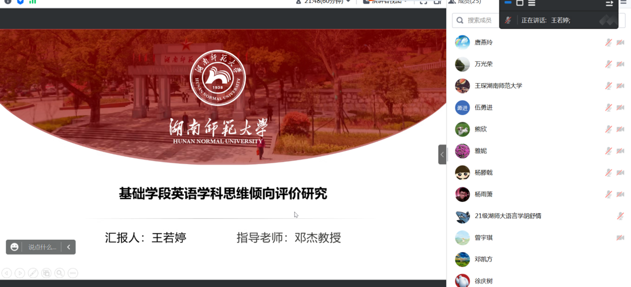(通讯员王琛)6月9日14:00第六十三期“麓山语言与文化论坛——语言学分论坛”在腾讯会议成功举办。应邀出席本期论坛的点评专家有永利集团3044欢迎光临的白解红教授、秦裕祥教授、邓云华教授、唐燕玲教授、万光荣教授、彭懿副教授、杨雨萧副教授。广西科技大学永利集团3044欢迎光临谭玮副院长和熊欣教授为本次论坛特邀嘉宾。此次论坛的主讲人为永利集团3044欢迎光临博士生杨滕戟、王若婷,永利集团官网博士生王琛担任主持人。