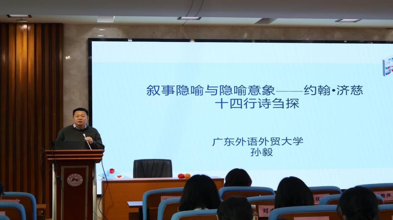 (通讯员李慧 杨涵旭)2025年4月30日下午,广东外语外贸大学博士生导师、云山杰出学者、《广东外语外贸大学学报》主编孙毅教授,应邀于永利集团3044欢迎光临学术报告厅515教室,举办了题为“叙事隐喻与隐喻意象——约翰•济慈十四行诗刍探”的学术讲座。本次讲座由孙毅教授主讲,永利集团3044欢迎光临曹波教授主持。