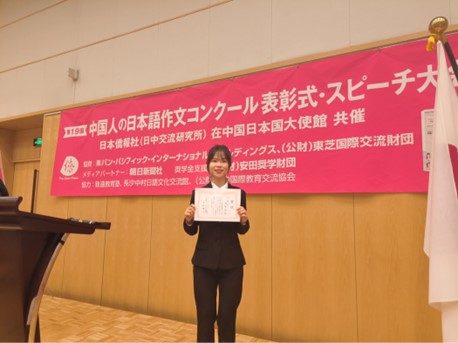 11月10日下午,第十九届“中国人日本语作文大赛”颁奖仪式在日本国驻华大使馆举行,永利集团官网学子在本次大赛中荣获三等奖。日本驻华大使垂秀夫为获奖人员颁奖并祝词。