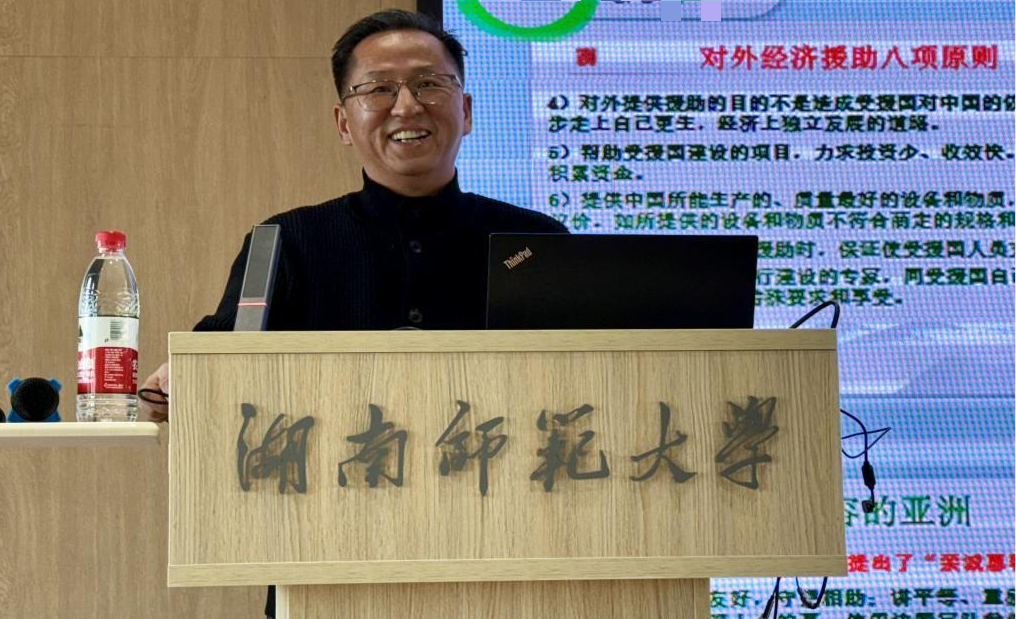 会议伊始,黄教授简要介绍了我国援外工作的内涵以及对外经济援助的八项原则,并强调关注政策动态的重要性。黄大辉教授以我国援外政策为立足点,结合自身多年农业援外实践工作事例,详细阐述我国农业援外事业的发展历程以及援外工作中需要注意的事项。黄教授分享道,我国对亚洲、非洲、拉美地区、南太地区各国开展农业援外工作,秉持“长期友好、相互尊重、平等互利、共同发展”的理念,彰显大国责任与大国担当,中国农业援外代表团为受援国人民带去先进农业技术的同时也赢取了各国人民的尊重和深厚情谊。通过总结自身多年外事工作的经验,黄教授多次强调在外交中不卑不亢、内外有别、热情有度的重要性,这是中国传统文化和传统美德赋予我们的使命。黄教授也提醒学生在从事外事工作时应该清楚了解各个国家的特色与历史背景,才能更好地开展工作;应该不断提升专业技能,为当地做实事才能赢得被援国人民的尊重。最后,黄教授寄语同学们应怀揣家国情怀,不断充实和丰富专业内、外知识技能,保持初心为中华民族的伟大复兴事业添砖加瓦。讲座后期的提问环节,黄教授耐心回答了同学们提出的实践中如何提升能力等问题,也给同学们分享了自己撰写的关于杂交水稻的专业书籍。黄教授的语言生动朴实,内容丰富,帮助同学们深刻了解当今社会对于外语人才提出的各项素质要求以及如何将所学与实践紧密结合的事宜,赢得了与会师生的认可和尊重,使人受益匪浅,讲座取得了圆满成功。