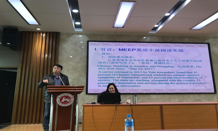 黎志敏教授从以下四个方面来展开讲座主题。首先,黎志敏教授从非英语专业和英语专业毕业生同英语本土人士交流困难的现状出发,从自己的国外访学经历和国内教学经验两个方面来进一步指出中国学生英语学习的薄弱环节主要是在口语和写作上,从而引出“MEEP”项目。其次,黎教授对MEEP实验案列和数据进行分析,提出了三点理论反思,即“文化生命体”理论、输入输出理论以及英语教育包括但是应该高于语言培训。再次,黎教授指出应遵循兴趣、知识、思想的教育原则去帮助学生培养阅读兴趣,养成阅读英语原著的习惯,提高学生的思想深度和文化内涵。最后,黎教授对MEEP的具体操作方法作了清晰的阐述,如“一对一”的基本模式、自己阅读+导师讨论+写作反馈的基本环节以及借助电影、有声读物、论坛等的辅助手段。黎教授反复强调,英语学习中阅读是必不可少的部分,要在阅读中训练语感、在讨论中培养辨析能力。