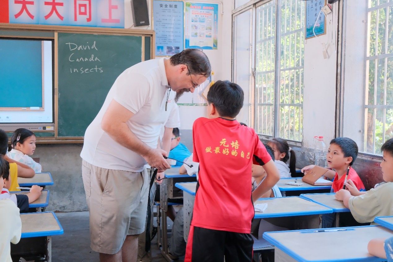 在课堂上,David Porter向学生们分享了随实践团抵达以来体验到的独特文化。学生们反响热烈,踊跃向老师举手提问,从饮食习惯、地理环境、文化景观等多个方面主动了解国外的文化特色与国内外的文化差异。两位老师也对学生的疑问逐一进行了细致解答。教学过程中,老师通过单词拼写游戏等寓教于乐的互动环节,充分调动学生的参与热情,在欢声笑语中将课堂气氛推向高潮。