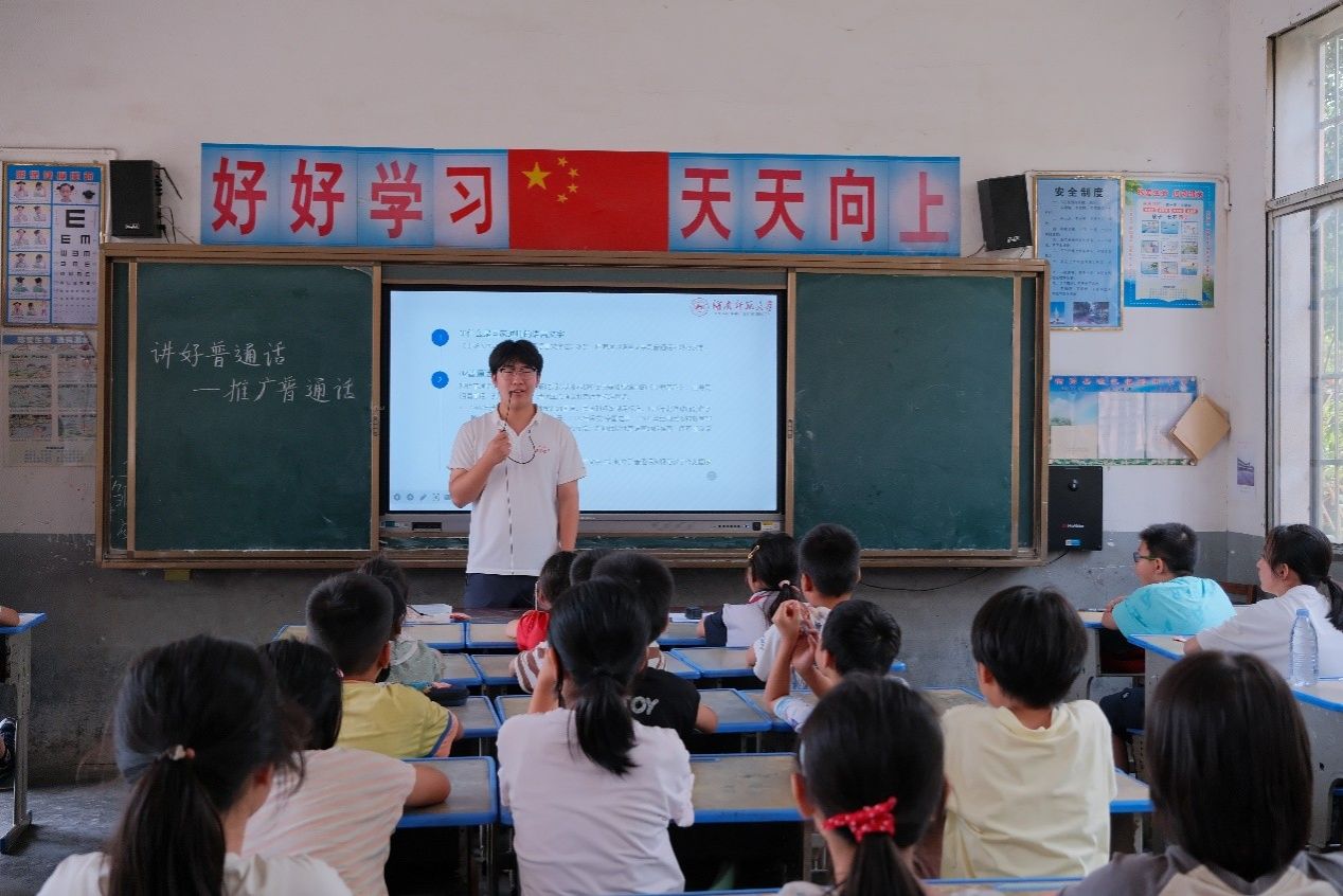 (通讯员 乔清泉 李祖熠 许佳怡 杨尚英)为发挥普通话在乡村教育振兴中的基础性作用,7月12日上午,永利集团官网“知行沃乡土,雨露润盐田”暑期社会实践团于衡阳县盐田小学开展普通话推广课程。