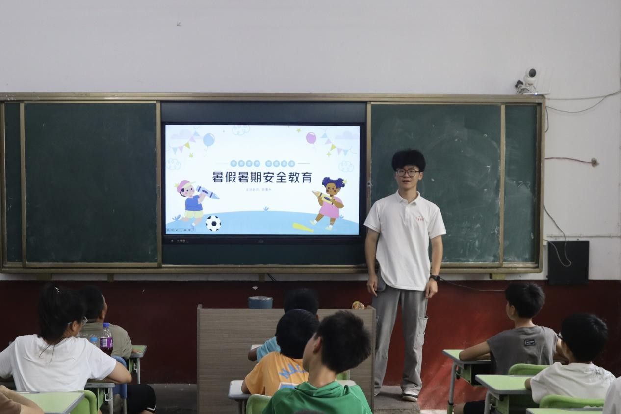 陈景杰分别从防溺水、防中暑、防拐骗、防性侵、交通安全、饮食安全、用网安全等主题,向学员们强调了生活中容易忽视的安全隐患,并科普危险发生时的正确处置办法;王庆琴、华文轩向学员们开展生理健康知识普及,帮助学员从认识自我到保护自我,树立健康观念。在演示环节,实践团成员通过带领小朋友们进行实践演练,巩固安全教育理论知识,加深安全意识。