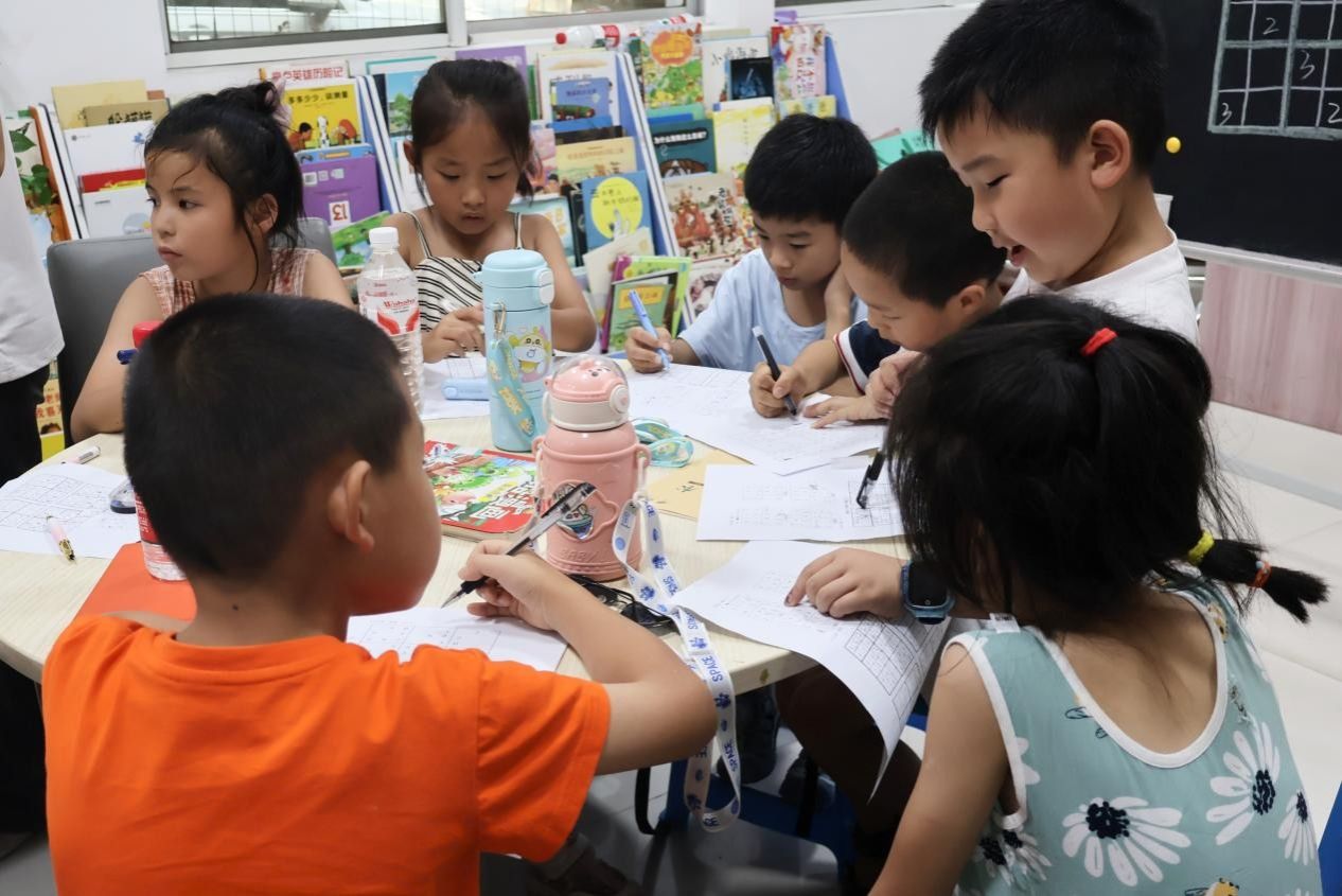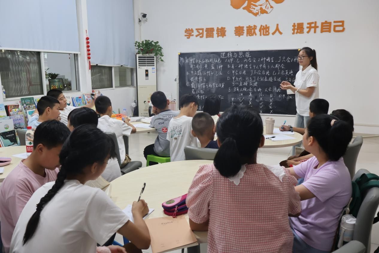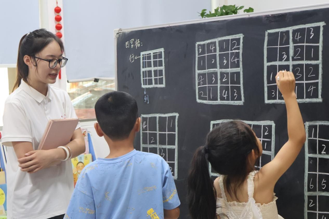 此次课堂以“玩转数字”为核心,巧妙设计一系列启迪思维的趣味环节。实践团成员通过逻辑推理小游戏、数独、创意七巧板等活动,耐心讲解规则,引导学生们寻找线索、分析判断。现场气氛活跃,小朋友们化身小小探险家,积极思考,踊跃尝试,在方格间感受数字排列的奥秘,在层层推理下感受逻辑的魅力。实践团成员全程密切关注学生的解题进度,及时为小朋友们提供细致的个性化点拨,确保每位小朋友都能紧跟课堂节奏,充分体验逻辑世界的奇妙之处。